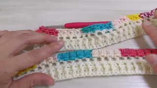 セリアのミルフィム7色を使って横長のひざ掛けを編みました。カラフルな玉編み模様がとっても可愛いミニブランケットです。なないろ彩色で編んだ部分をコットン糸に変えて春夏用としても使えます♡︎お好きな色、お好きな糸で編んでみてください。